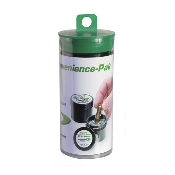 The popularity of Redding?s Imperial Dry Neck Lube in Application Media has spawned many requests for an easier way to buy the recharging lubricant along with the pre-charged application media. The Imperial Convenience Pak was created with both containers packaged together in a clear plastic storage tube. The Application Media is useable for an indefinite period with re-chargings of dry lubricant every 400-500 cases.